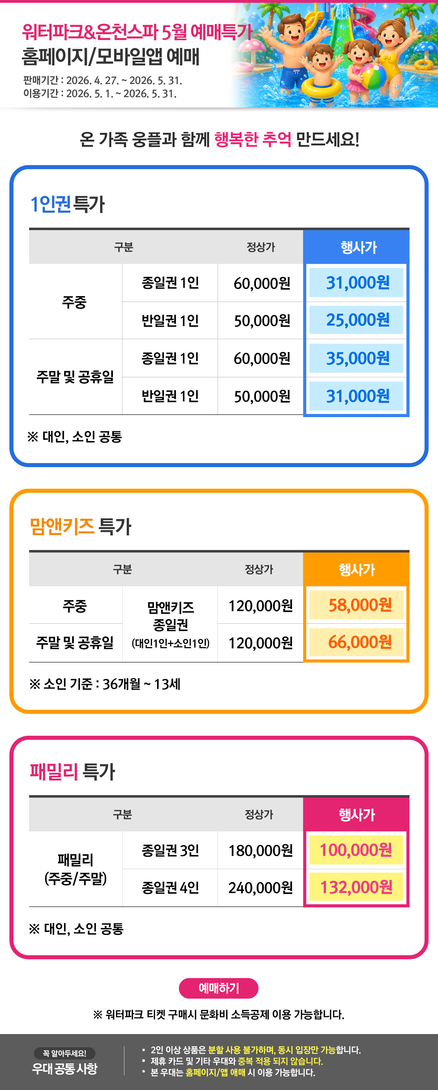 워터파크&온천스파 5월 예매특가