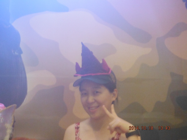 웅플 할로윈 포토존에서 코스프레 참여했어요.^^ 뿌옇게 나와서 자체 편집된 느낌 ^^ 좋아요.