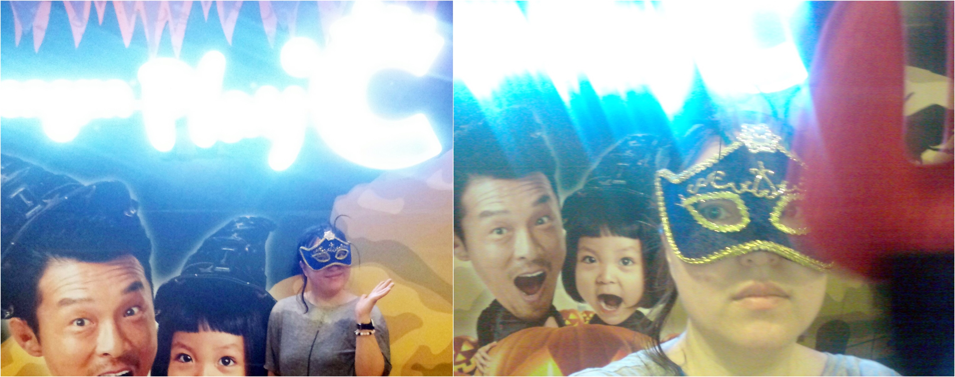 둘째 미니의 할로윈 코스프레~ 모자와 호박바구니의 컬러를 맞추었고,,, 블랙망또를 걸쳐서 심플하면서도 강렬한 인상을 주었어요~~ 수영복이 디즈니공주그림이라 넘 블링블링한 할로윈코스프레가 되었네요...!^.^ 미니의 컨셉은 할로윈파티에 온 공주들....!!ㅋㅋㅋ 저는 가면을 쓰고, 빨간 악마의 무기를 들고 셀카를 찍었는데,,, 약간 무서운 분위기....^^;;;; 저의 컨셉은 추성훈과 사랑이 부녀를 놀래킨 마녀 컨셉이랍니다....ㅋㅋㅋㅋ