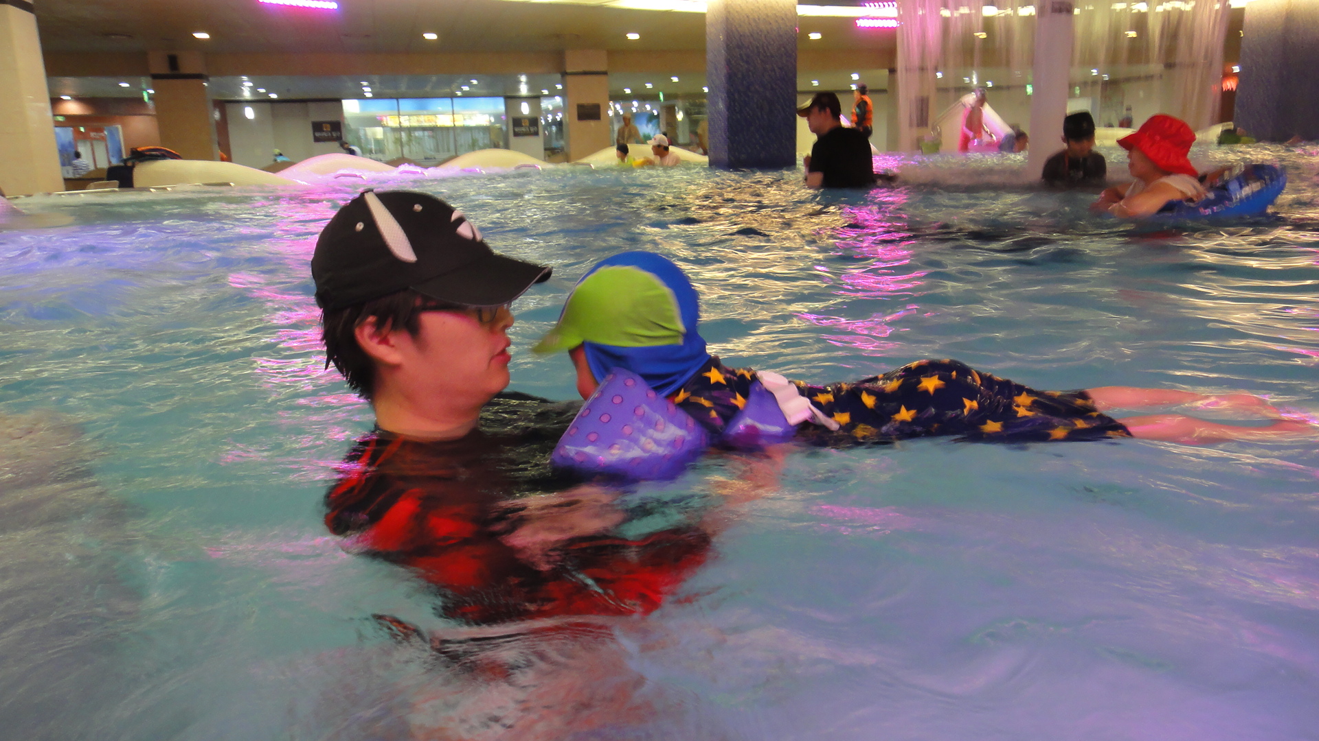 처음 가본 웅진플레이도시였는데~ 아들이 너무 즐거워하네요. 물도 따뜻하고, 어느 곳이건 아들과 함께 할수 있어서 즐거웠어요! 실컷 놀면서 물에도 겁을 안내는것 같아 넘 다행이예요. 수영을 빨리 가르칠까봐요ㅋㅋ