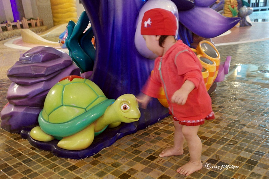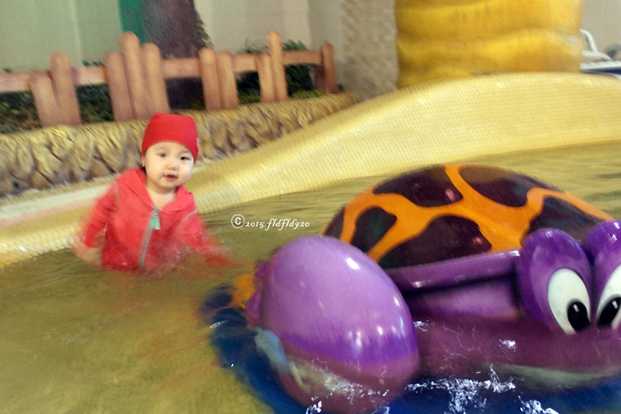 36개월미만이라 무료 입장! 아기와 함께가도 재미있는 웅진플레이도시^^ 돌핀 키즈존에 들어가기 전,,, 동글동글 매끄러운 꽃게조형물에 앉아서 찰칵! 거북이와 찰칵! 튜브이용이 가능하여~ 아기들도 신나게 놀 수 있고 키즈존과 유아풀 근처에 썬베드가 넉넉하게 자리잡고 있어 어린자녀가 있는 부모님들이 이용하기 편했다