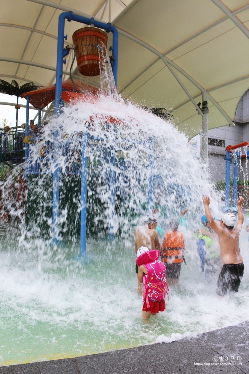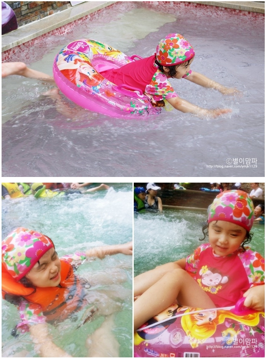 야외수영장 써니파크에서 미끄럼도 타고 물벼락도 맞고~ 뽀로로도 만나고~스파까지 즐겼네요! 야외수영장 하늘도 보이고 탁 트여서 기분도 좋고 너무 재미있어요^ ^