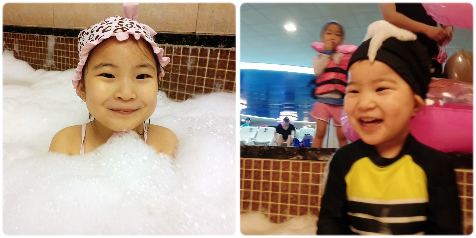 보통 유아풀장은 좀 심심하고 그렇다고 깊은 풀에서 놀기엔 꼬맹이들은 튜브타고 동동 떠나니는거 외엔 할게 없는곳도 많은데 웅진플레이도시 워터파크내에 키즈스파가 있어서 물놀이를 하면서 공놀이 거품놀이 블록놀이까지 함께 즐길수 있는건 참 매력적인것 같아요. 시간가는줄 모르고 놀수 있네요 ^^